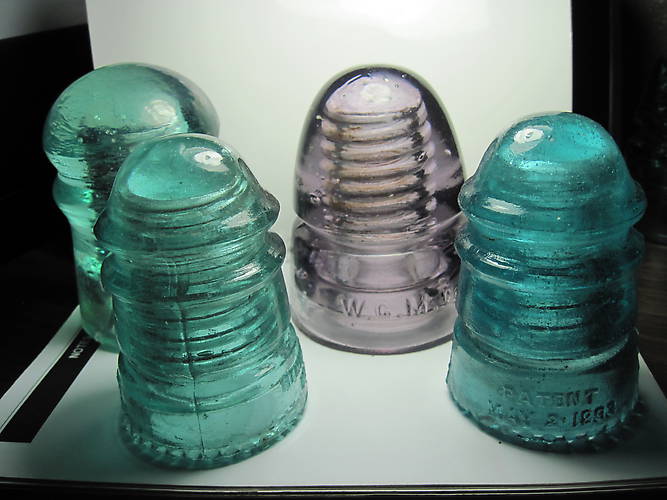 CD 126 blob-top, WGM CD 145 in Purple, CD 113 Hemingray #12 with some milk and the star of the show..a CD 106 Hemingray 12 milky blue aqua. All were found in Des Moines area antique stores.