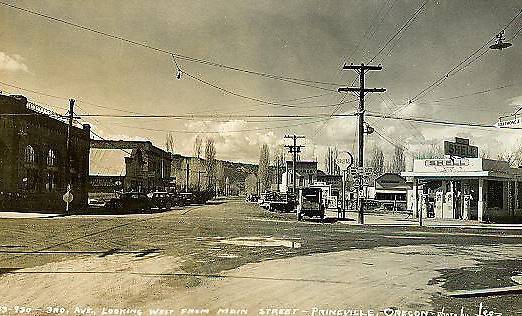 In addition there is an old Shell gasoline station in the background along with a spanwire radial wave street light visible in this great photo.