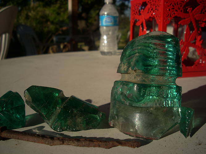 Yesterday me and the new wife Rachel went on our first insulator hunt together. We found a couple pieces of broken ec&ms and a nice piece of a Gregory! I wrote some questions on ICON about them today...