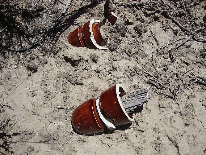 While out walking a stretch of old railroad I started to notice remnants of an old Postal Telegraph line that followed along the outside of the railroad right of way. Many Brookfield marked Postals and some unmarked Pittsburgh porcelain beehives littered the ground in pieces near where the poles used to stand. Definitely a good place to hunt in the future when time allows. |
