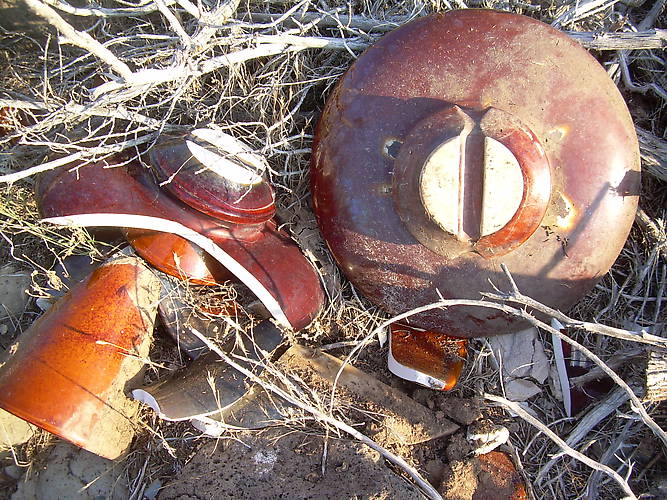 It looks as if these were dropped from the cross arms, every one we have found has been smashed. I would love to add one to the collection.