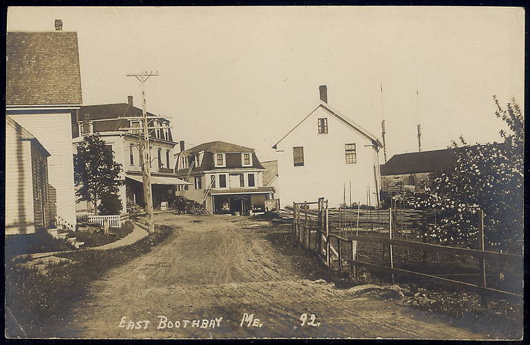 The upper crossarm supported electric lighting circuits for this beautiful seashore community. Below are two 10-pin crossarms. Those were for MaBell's telephone subscribers. These crossarms were well creosoted and many lasted for active open-wire service here in New England into the 1970s and beyond. The latter construction replaced 1890's six-pin (double-lag-bolt-to-the-pole mounted) crossarms commencing around 1910. |