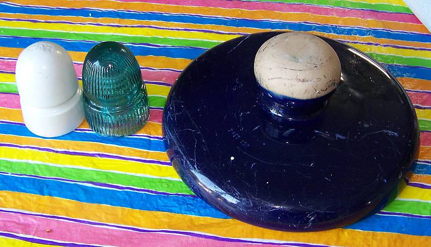 What summer vacation is complete without a few little side trips? Got the cobalt blue suspension in an antique shop in Bromont Quebec, and found the other two next to a soybean farm.