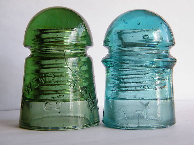 Thought I would walk and stroll the young one to my savings bank branch. Had no thoughts of doing any insulator shopping today. The computer was down at my bank so I decided to walk the half mile or more to the other branch. Knew there was an antique store right next door and I would go see if any new insulators were on the shelf there after I finished my banking business. What the heck. It has been a long time since I purchased any from that antique shop, The last time was when I purchased a couple five gallon buckets full. I really didn't think I would find anything but I was surprised imediately when the yellow green New England Tel and Tel jumped out at me. It has no periods at all. |