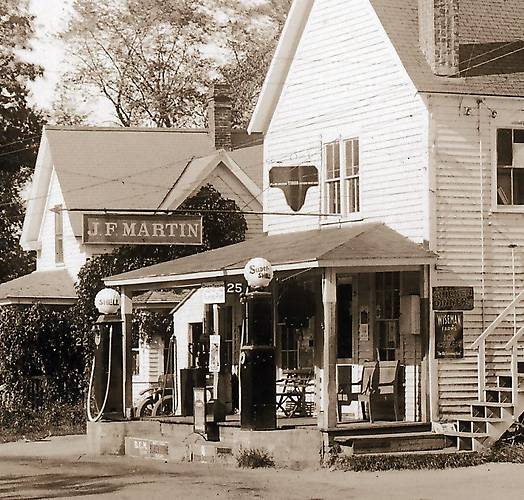 Also note the two-wire open wire electric service leading to this building on the upper right. This sort of service drop with electric utilities was pretty much commonplace until the 1930s when covered cable (with two or three wires inside) became standard. These cables had rubber insulation around their wiring and were externally sheathed with a strong cloth-like fabric. |