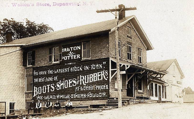 Also seen is a stone-built shoe store of the day that served many local residents like the shown phone open wire line did.