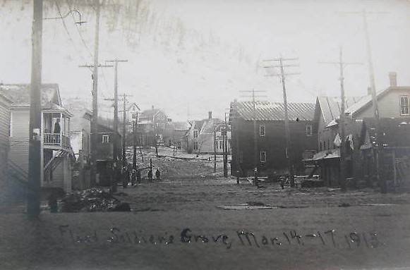From the looks of things the pole lines (mostly electric distribution along the left with telephone openwire along the right) fared pretty well during this epic flooding just about 100 years ago...