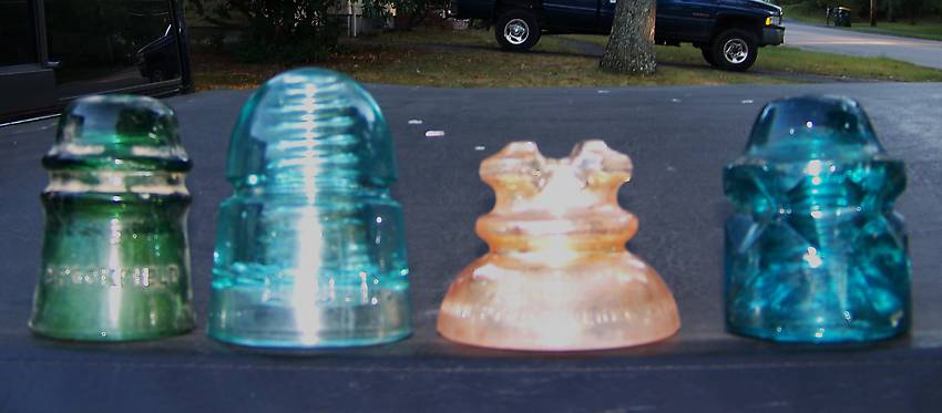 On another one of our barn hopping adventures we came across 4 nice pieces. the CD 121 is in a cool green color and the CD 145 EDR was one missing in our beehive collection. The carnival cable top was a bit unusual but tell me this what's a Chicago CD 135 shoulder embossed doing in a barn in northern NH sitting out of site in a wooden box?? |