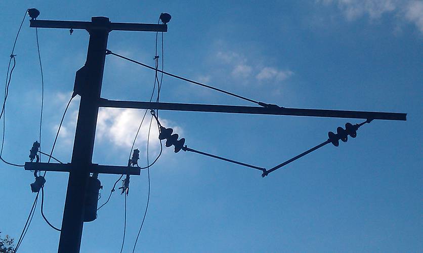 Here's the same pole set up, except this had suspensions set up as if it were used for a trolley line at some point. The line is in Cheyney, PA just down the road from the college.