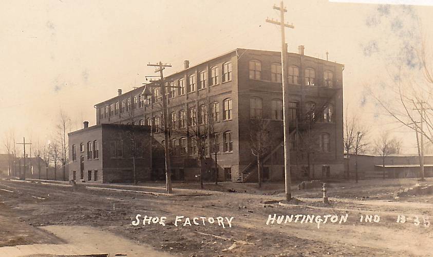 Cool photo depicting the arrays of utility open wire and pole line architecture that once was part of this Indiana community. Also note the open-type arc street light in the center of this image. These were among the very first electric street lighting fixtures used in this country, commencing in the early 1880s. |