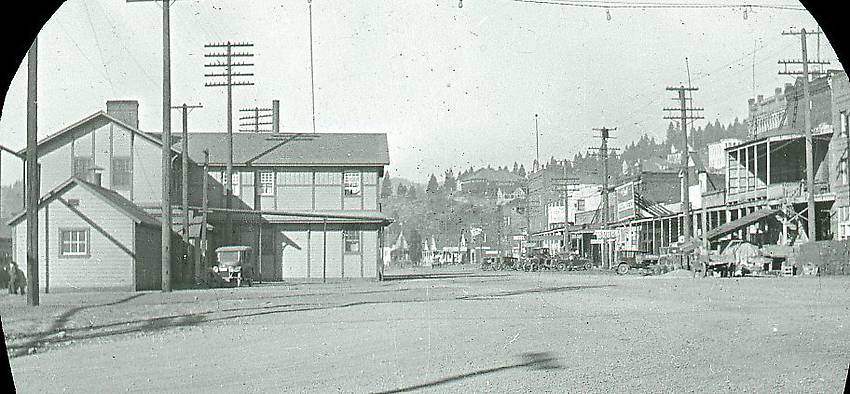 Telephone or telegraph lines were along the left and service for electric customers strung upon the upper crossarms along the right.