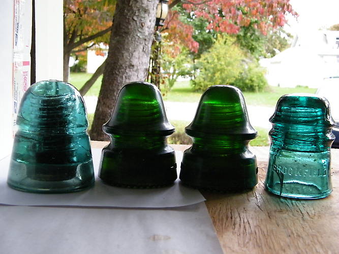 The flea market that I usually go to on Sunday hasn't been unproductive so I went in the opposite direction today. Began to believe I should've picked up that pointed dome Star beehive at my first stop even though it was only blue aqua under the soot. I knew the two Hemingay-19's also had a coating when I saw them in a box on the floor miles and miles away at a place where I had never visited before. I did know what CD they were by the shape of the dome and was nearly to lazy to even pick them up for a closer look figuring they were aqua or blue. The light was aweful dark but when I turned the first insulators and my back to where the light was somewhat better I couldn't believe my eyes. When I repeated what I had done with the second and only other Hemingray-19 in the box I almost fell the rest of the way to the floor. While I was looking through the box of maybe 8-10 insulators the owner shop was telling me a man from Long Island N.Y. comes in once in awhile and buys insulators when he has some. Made me wonder if he didn't want to waste his time picking up a couple of commons. Otherwise, why would they have been there waiting for me? |