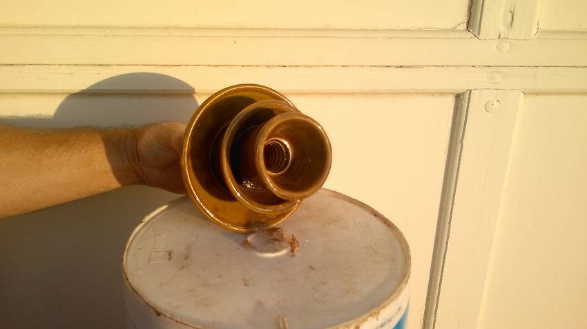 Can anyone assist please with the style # and estimated value of this one? Unmarked Fred....least I think so anyway.....with sandy tan glaze. A "Y" is incused on the lower part of the upper shell. Piece stands some 5 1/4" tall and base is about 2 7/8" and top shell is about 5 3/4". Thanks! Used apparently in the Idaho Springs area....