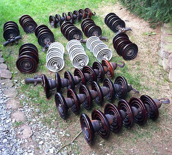 I picked these up from the S Manhiem-Donegal 69kv line. A lot more of the old line was just taken down, and the crew let me take these right from the scrap truck. The maroon ones are unmarked Pincos from 1928 and the grey ones are Chances from 1972. There are also a 1950s Pinco and Locke disk in there too. If anyone wants any of these, shoot me an Email and hopefully we can make a deal. |