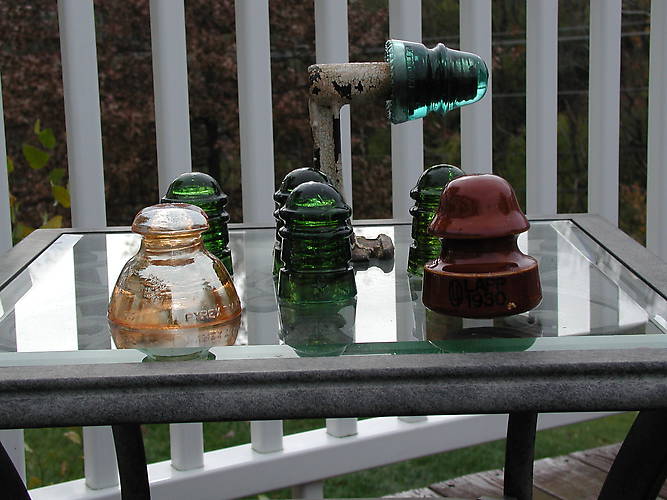 Another view of the recent finds, 4 CD 113's, CD 160, CD 234 (carnival) and Lapp insulators.