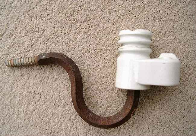 This is a U-1953 fuse insulator from Holland, together with its original hook. These insulators are used on street light circuits. But these days they are a rare sight, as open wires in Holland are almost extinguished!