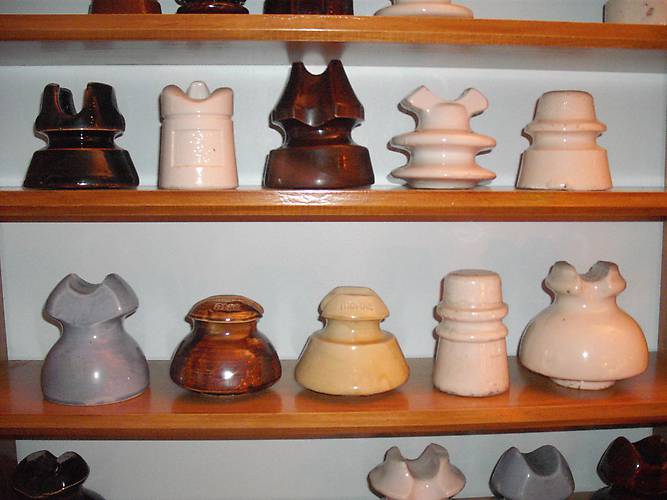 Photo one of three showing some of the Porcelain Pin Types that I purchased in 2012. Many from insulator swap meets, and some from internet contacts and sales. and some from big time insulator shows. I collect mostly telephone and low voltage porcelain pieces. Two more pictures to follow. Email me if you want specifics on any piece shown. Enjoy! |