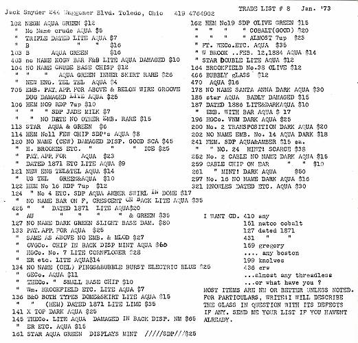 Those were the days my friends. CD 241 aqua or amber same price $15 ea CD 192 HGCo dark aqua $25 CD 162 Hem 19's ... misc colors $15 - $23