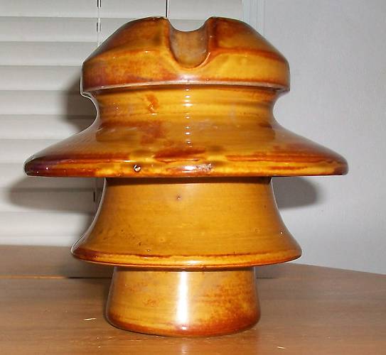 Nice orange glaze on this one. Unfortunately, it had a rough past. Part of the top ridge has been reglued. No markings on it. Still looks pretty good.