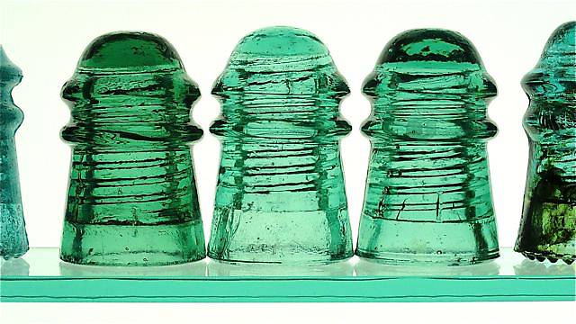 Piece on right has a very flat base. Piece on right has a round base and what might be a mold extension line above the base mold line, making it notably taller. Center piece falls somewhere in between.