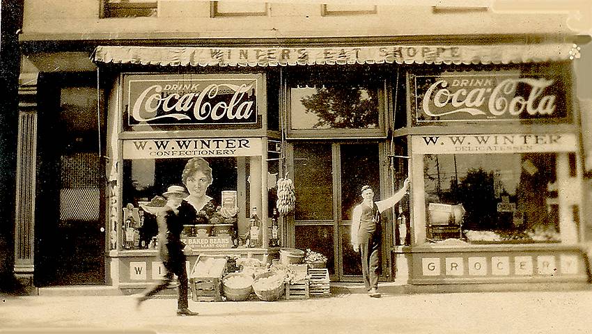 My grandfather, Cortie M. Miller. stands in the front door of WINTER'S GROCERY in Clarksville, Tn. Dates from the early 1900's.