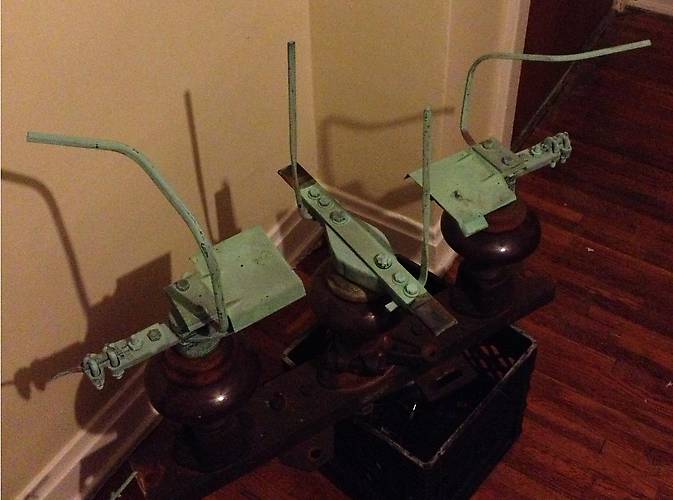 Here is another angle of this switch in the open position. The metal horns draw the arc away from the switch contacts and attempt to form a Jacob's Ladder to extinguish and quench the arc. The metal horns have pit marks on them where the switch was opened during high current loads. |