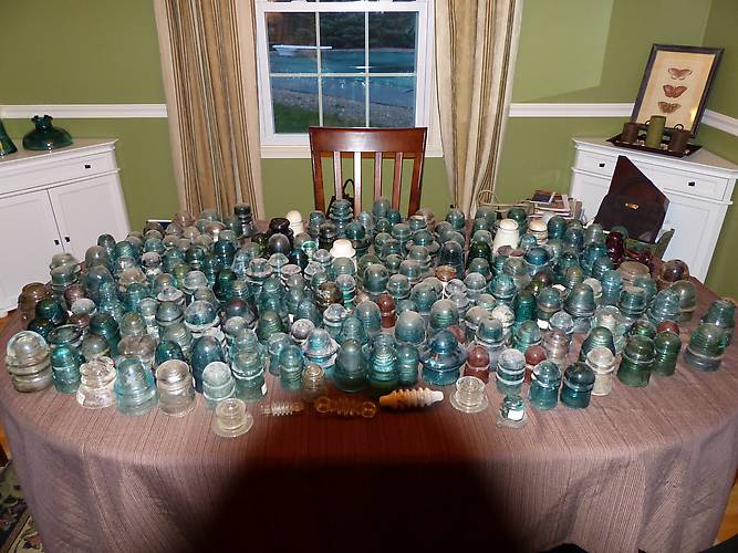 This is what we came home with. Now I'll go through these one at a time, clean them up and see what I can add to my collection. Displaying my collection prior to this find (about 20 insulators) was never a problem. Now...I'll have to figure out what to hold onto and then how to display it. Safe to say, my collection just got larger...a lot larger. I have a very supportive wife who participates with me, so that is a blessing. |