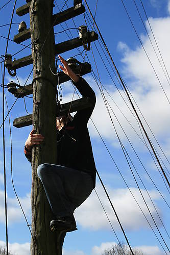 Here I am attempting to un-bind the wires on one of the shackles (I'd forgotten my wire cutters!). This was unsuccessful so I just sawed the arm off and snapped the wire as it was fairly weak and rusted.