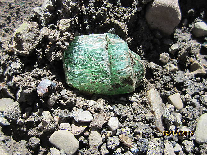 Jeff Katchko and I spent a couple days this week walking an old abandoned New York Central RR line. Jeff Spotted this bubbly yellow green shard.