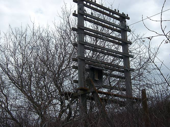 This pole is still standing 33 years after this line was dismantled. This is the last pole before a C.P.R bridge that spans the South Saskatchewan river.40 years ago the insulators on the bridge were Continental Rubbers Ha Ha..