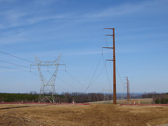 Here is a picture I took several months ago of the Manor-Graceton 230kv rebuild, located in York Couty PA. The old line was built by the Pennsylvania Water and Power Co in 1930, and connected the Safe Harbor Hydro Station to the Riverside Substation in Baltimore. The old line looked identical to the parallel line in this picture which was built at the same time, and went to the Westport Substation in Baltimore. It was reconductored in 2003. It's nice to see glass getting put in the air! |