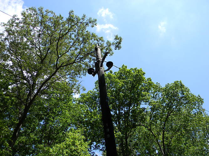 Boyd's Millpond line was constructed in 1909 and used a special arrangement on the poles. This arrangement uses a unique Bow & Arrow style bracket with M-3060 Thomas. A stretch of about a mile of two has many poles abandoned with the brackets and the M-3060. Most of these poles seem to be original or the brackets were reinstalled on a newer pole. The lines have also been reconductored maybe 30 or 40 years ago. |
