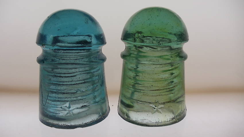 2 CD 102 Stars, 1 in a nice aqua and 2nd a nice green with some amber swirls.
