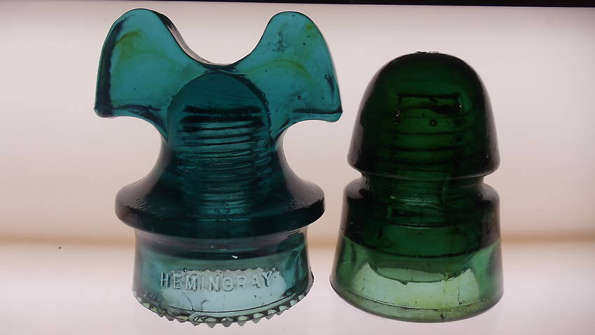 Picked these 2 up at a flea market on Sunday. The first is a CD 257 Mickey in hemi blue with nice amber through the ears. The second is a CD 145 B in green with nice amber swirls a couple of amber blobs.