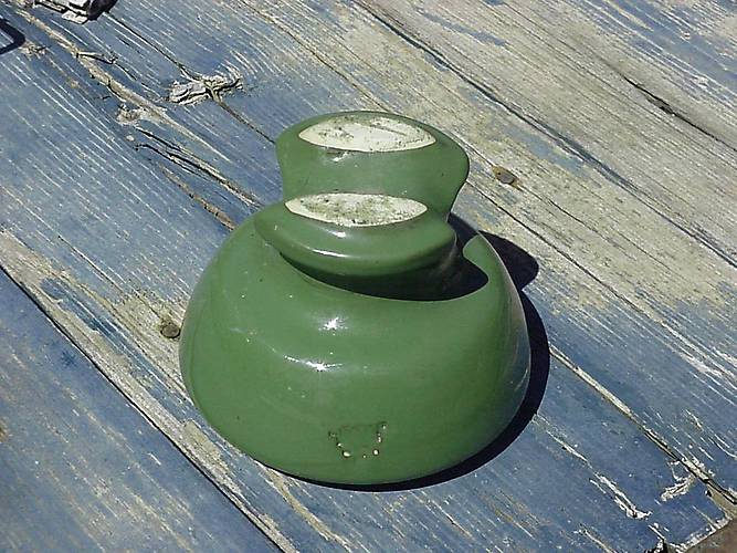 Found this insulator at a garage sale for a quarter. I'm not sure of the U number (can't find it in my book. It measures 3 3/4" H by 5" W), but I have many of these in dark chocolate. This one is in a green glaze.