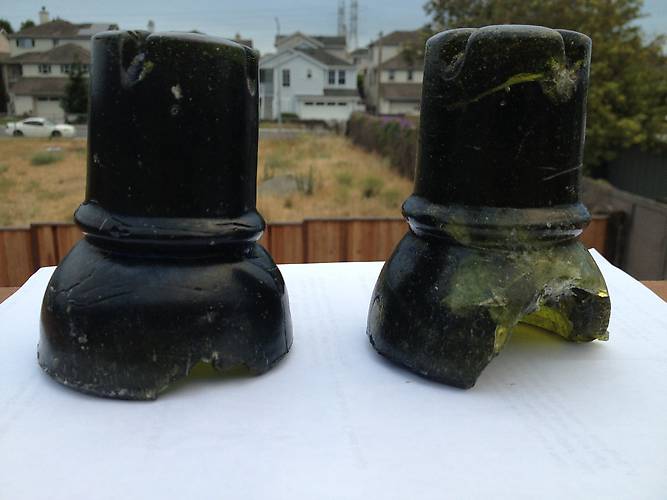 Left is the original find; right is the second "whole" find. Not pictured is the top to a third CD 785. First photo of second threadless find [id=375531136]