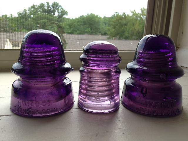 Found this little beauty in the middle on Craigslist! Best find of my short insulator hunting career as of yet! Don't know if I want to sell or keep. I don't know if I will ever get this lucky again! :) It is a [030][No embossing]{Unembossed C.E.W.} SB in purple!!! It actually starts out lighter on the bottom and blends into a darker purple near the top!!! Very neat color! |
