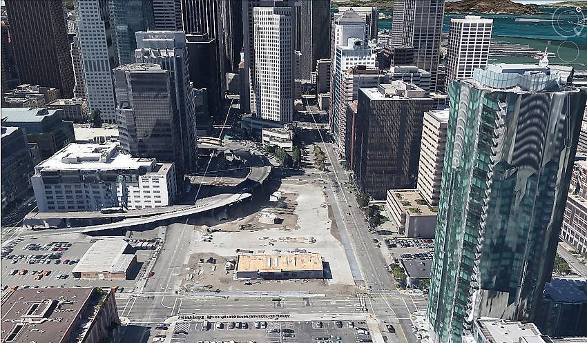 Older Views from Google Earth - Colin Jung posted the following (in part) on ICON: Recent diggin' in San Francisco that uncovered the 2 and 1/2 CD 785's was all accomplished within the Transbay Transit Project Area, the bulk of which extends from Beale Street to 2nd Street between Mission Street and Howard Street. See construction area map. http://transbaycenter.org/construction-updates/construction-activity-map Excavation of the project area actually began in January 2012 and construction of the underground foundation started in January 2013. As excavation has proceeded, numerous artifacts have been recovered by project archaeologists who have created a public exhibition that may be viewed in San Francisco until the end of June 2013. Please note that there are numerous, different active construction sites in this south of Mission Street area. Don't get the sites confused. The first known glassworks in California was Baker and Cutting, which started operations in 1859 on Beale Street between Mission and Howard Streets, whether that glassworks site intersected the Transbay Transit Project Area is not known. According to collector Dwayne Anthony, he has personally spoken to a bottle digger who has dug the Baker and Cutting site (years ago) and found shards of the California threadless sleeves, CD 1010. If the B&C glassworks site was within the Project Area on the west side of Beale Street, past and ongoing excavation and construction has obliterated the site. Other redevelopment projects with underground structures have occurred on this segment of Beale Street and these projects would have also obliterated the remnants of B&C if the property boundaries intersected. One and a half CD 785's (in dark olive green glass) were recovered about 19 feet below existing street grade next to the easterly Beale Street sidewalk nearer to the Howard Street side. In this area there is a general lack of broken glass and a blackish sandy soil. At times there is a strong smell of tar emanating from the ground. The area is part of a larger area historically known as the "Tar Flats". The digger of this insulator feels it was lucky happenstance for him to find it as the ground surface conditions are continually changing from the ongoing construction activities. Curiously, the insulator was discovered on a second visit to the local area where the digger had previously found shards of a very old pickle jar. The other CD 785 in dark olive green glass and a base shard of a fourth CD 785 in dark orange amber glass were recovered a short distance away from the first find under Beale Street. Note that Beale Street is a "street bridge" where it intersects the Transbay Transit Project Area. Additional project excavation has occurred in the area since the 2 and 1/2 finds have been reported. The digger has continued to work the site since the finds, but has made no new discoveries. Both the digger and this author believe his finds represent a single telegraph pole site, rather than, remnants of the actual glassworks site. |