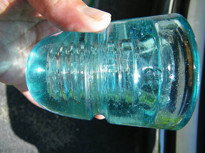 A tough to find insulator for the B collector (that's my opinion anyhow). This fizzy insulator has B on both front and rear skirt and B.M.G.M. CO. blotted out on one of those skirts. Backwards #1 and normal 3 making up 13 at top of dome. With the exception of a side flake on the inside of the inner skirt this insulator is mint. That flake if about 3/4" long on the left side of inner skirt. It is slightly visible through the outer skirt when displaying from the blotout side. You can actually see in this pic if ya look close enough. First email saying I want for $22.50 will have it shipped to their door priority mail within 1-3 days once payment is made. I accept Pay Pal in a non-fee mode as well as personal checks and money orders. |