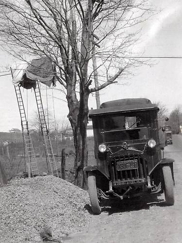 Quite likely the crew working here was servicing paired lead-sheathed telephone cable. I believe canvas tents erected upon sites like this one assisted splicers. I fondly remember "pole tents" as a kid here in MA during the 1960s and noting the small fallen "dots" or "splatterings" of lead from such aerial work. They were difficult to detach from the sidewalk but I had some fun collecting the end-snips of the colored plastic wires. I also recall one NET&T splicer telling me (around 1963) that girls liked to save these colorful snips for making artistic braiding thingies that they wore. Hopefully they didn't do much if anything with the lead splatterings.... |