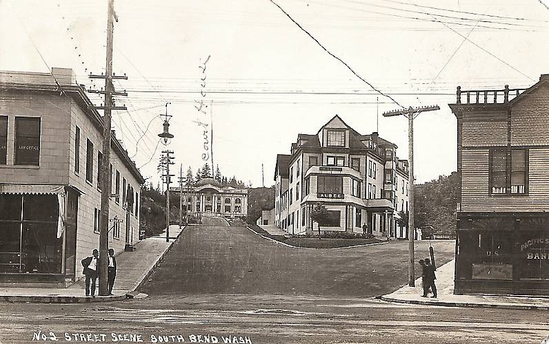 Lotsa of old-time open wire stuff going on here within this community's centre including a neat telephone openwire pole line along the right ;-)