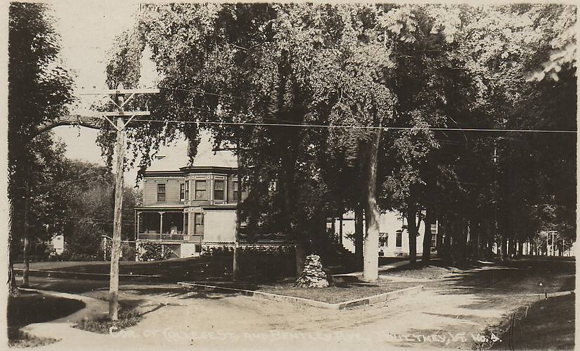 Great view from one of this village's crossroads with a nice open wire (probably for telephone subscribers) along with a Victorian home in the background.