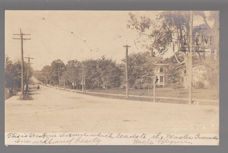 A trolley line also is seen here serving within this Maine community. On the left is a pole line with an "add-on" pole top wood bracket (sidepin) construction that I believe was for local fire alarm telegraph service. The latter were typically placed upon pole tops through around 1910 at least here in New England. Poletop fire alarm circuits installed as such physically and electrically protected them from the mazes and clutter of potentially falling electric and telephone wires.... if otherwise strung beneath. Gamewell and many others installed such lines atop poles as standard practice owing to the fact that fire alarm calls via boxes throughout communities served were of the utmost, vital and often...the only...means of immediate emergency connection in those days since telephones were not yet all that commonplace (albeit still a bit expensive). When phone service became much more affordable and thanks to enclosed-paired-cable (lead sheathed) and standardized local electric distribution construction, many pole lines were more reliably (safely) rebuilt commencing in the teens with fire alarm circuits typically re-lined just above the then-new telephone cables with electric service above them. |