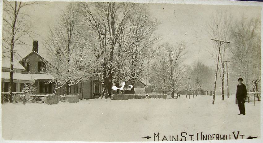 An old-fashioned New England snowstorm peacefully blanketed this quaint Vermont village. Can't you smell the fragrance of firewood burning from the stoves and fireplaces within the houses nearby? And can't you hear absolutely nothing but the sound of whatever sleighs, trains in the distance or animals that might be around? Of course before when snowplows, aircraft, vehicular traffic and the lofty noise of people, etc. etc., came about. Anyway, It is assumed that the earliest crossarm-style telephone open wire by New England Telephone was via using six-pin arms like this one...commencing at some time in the 1890s. These early arrangements had two lag screws affixing the crossarm to the pole (instead of a through-bolt...which came a bit later) and *with* crossarm braces (in most instances) probably 30-inches in length mounted upon the outside of their crossarms. All of this was later replaced by Ma Bell with 10-pin phone line construction in the teens and thereafter, retaining outside braces but with a through-bolt for pole attachment. For many years creosoted pine arms were the norm at least here in the Northeast by Bell companies....with wooden pins continuing as well. |