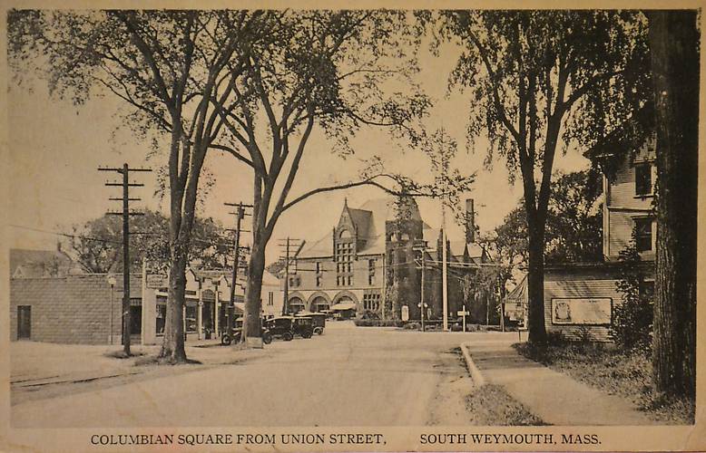 These were electric distribution lines to local residential customers as well as businesses. Most if not all of the tall trees you see here fell during the Great 1938 Hurricane. All of the buildings you see remain pretty much the same. Weymouth is about 15 miles SE of Boston, MA. When this photo was taken electricity service was provided by the Weymouth Light and Power Company. |