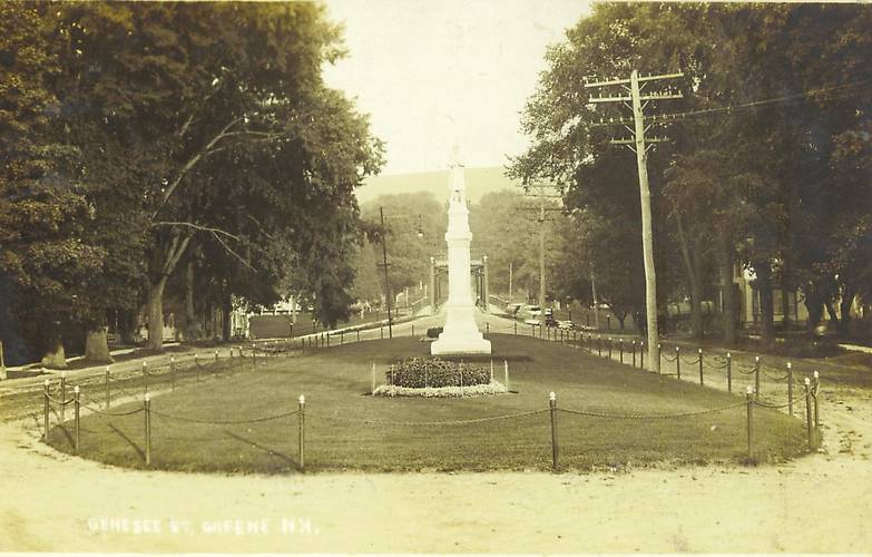 Most likely this very nice open wire pole line carried telephone circuits along the top possibly complemented with electric lighting wires on the lowermost crossarm. Nice vintage scene from just about a century ago of this NY State village common with an openwire pole next to it to boot, don't you think ;-) ======================================== |