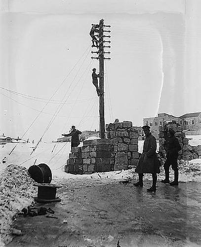 Jerusalem, 1921, Lineworkers On Openwire Pole