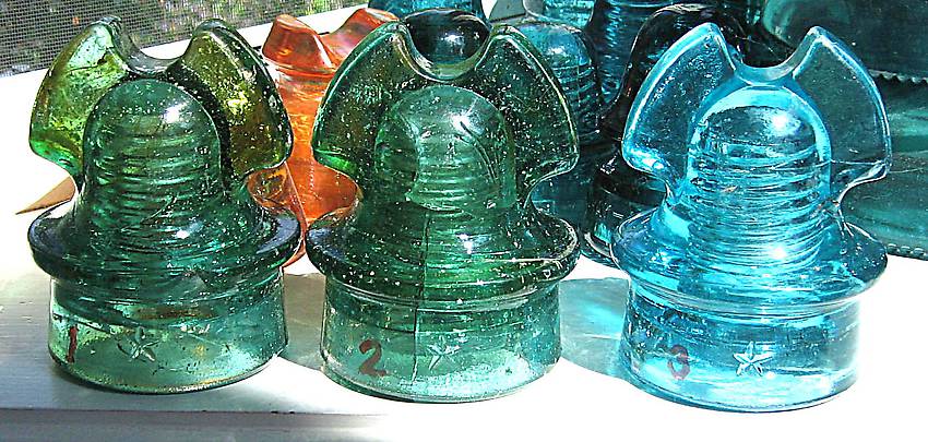 HERE ARE SOME RATHER HARD TO FIND 260 STAR HELMETS #1 is a [020] with the patent date on the rear. It has significant amber in the ears and body as well as plenty of microbubbles and junk. It has a WR chip on the right front, inner skirt chips, what appears to be an internal annealing fracture and a ding to the left rear ear tip. THE EARS ON THIS PIECE ARE SPECTACULAR!!! $300...more pictures are available....now $275 #2 is also a [020] and has amber throughout with microbubbles. It has some internal annealing (??) fractures, a fisheye on the rear dome and a 1 1/2 " WR chip on the rear. $225...now $200 #3 is an blue aqua without the patent date [010] with only a very minor and hard to see front WR bruise, and small rear WR chip. SOLD CONTACT ME IF YOU ARE INTERESTED IN MORE THAN ONE FOR COMBINED PRICES. |