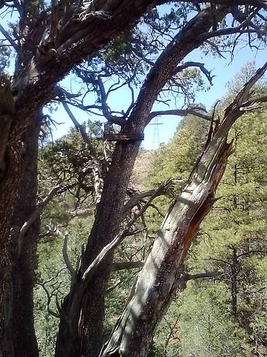 We went back out today to try and find the line in another area, We had about given up when we discovered we were looking to low. Check out the cross arm in the tree with one insulator still on it. You may have to hit view original for a good look. Also note the Child's tower in the back ground of this picture. This pony again was a different color with multi tone and runny glaze. |