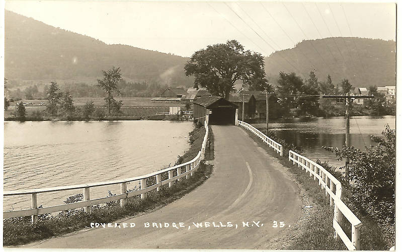 Wells, NY c.1915, Covered Bridge, Phone Openwire Line